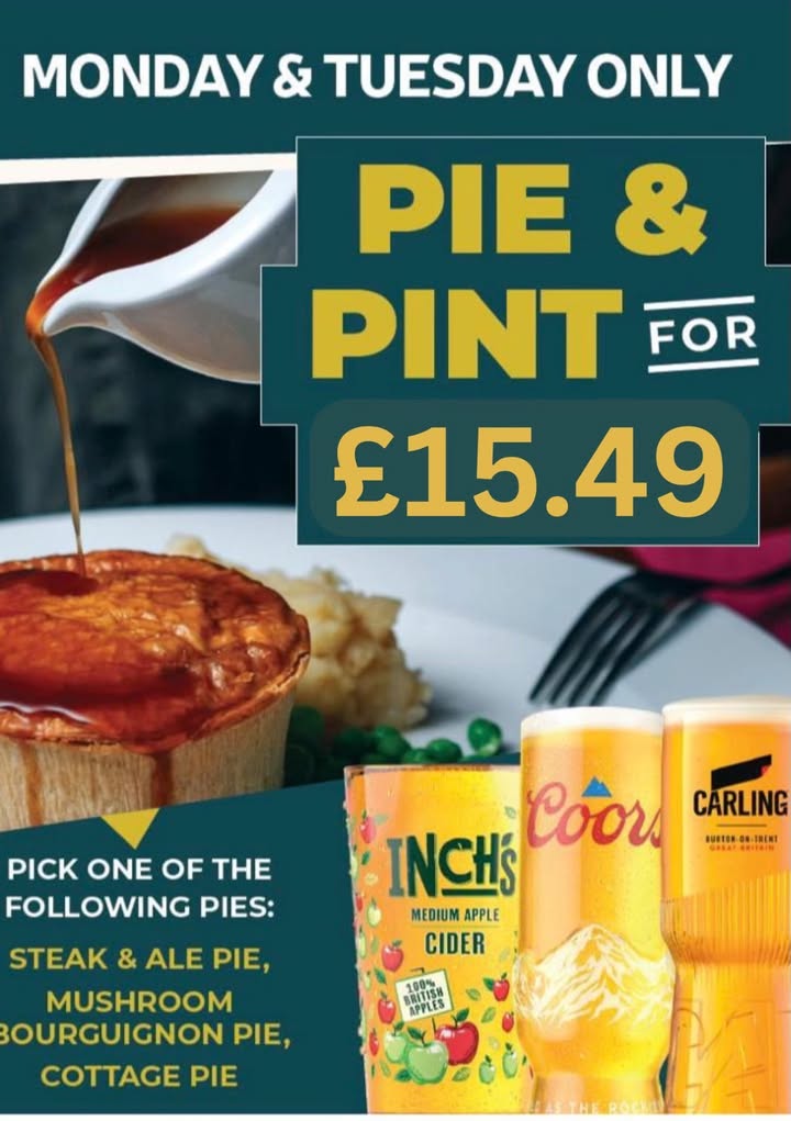 🥧🍺 PIE & PINT – JUST £15.49 🍺🥧